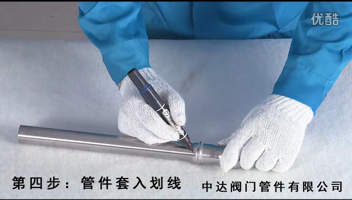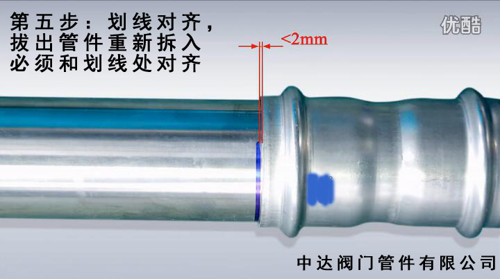 第五個(gè)步驟,開始?jí)航?,將不銹鋼水管再次插入管件,確認(rèn)其劃線小于等于2mm。